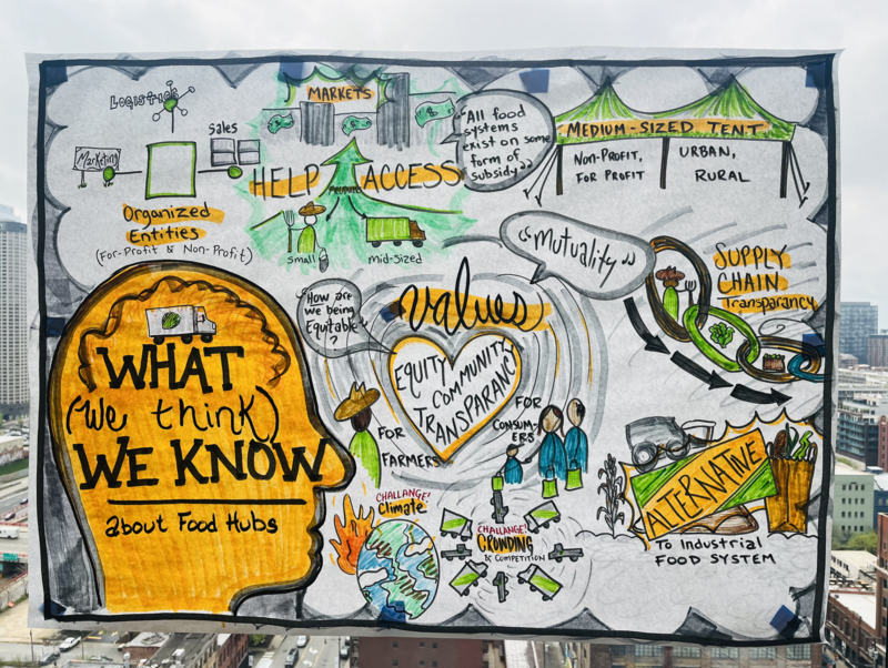 Facilitated a three-day national convening of food hub leaders, to surface shared challenges, identify systems-level needs, and co-create guiding characteristics and recommendations for the future of the food hub sector, in partnership with Kitchen Sync Strategies.